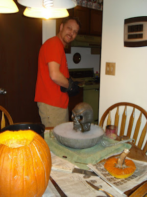 Brian is surprisingly festive around Halloween. He even makes root beer with scary dry ice fog (and who couldn't love the sweet skull punch bowl he got - it "bleeds" your beverage out of its eyeballs, awesome!)
